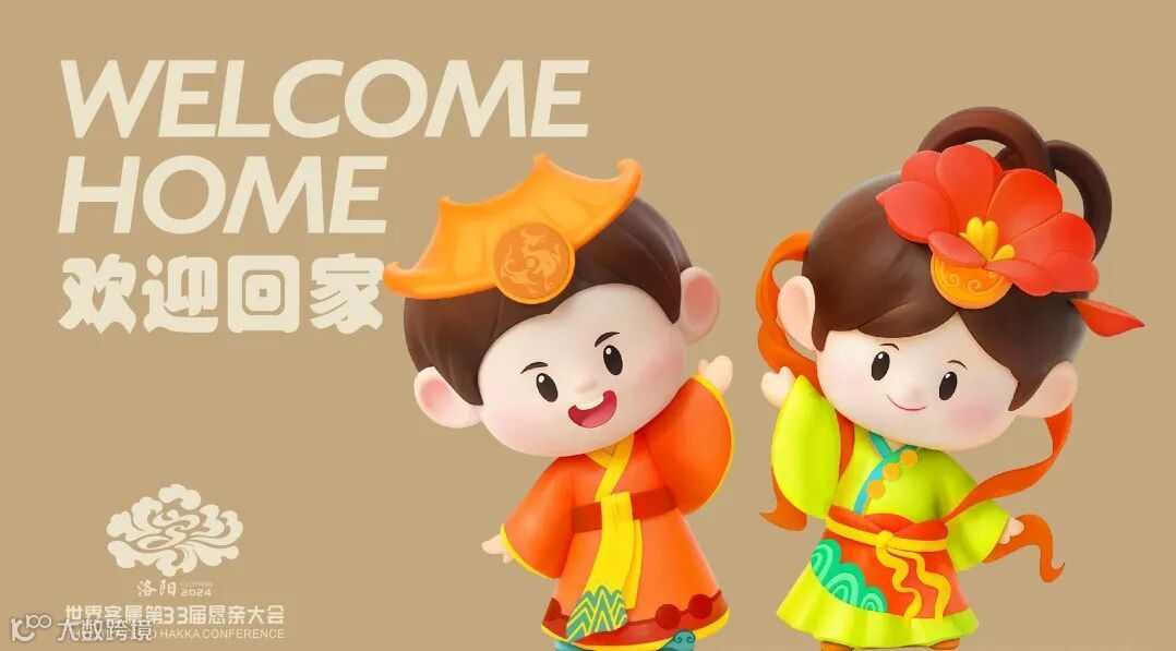 “和和”与“乐乐”以双手展开、怀抱迎接的姿态,传达着家乡的温暖,象征着对海内外客属乡亲来洛阳回家寻根的热切期盼与欢迎。
