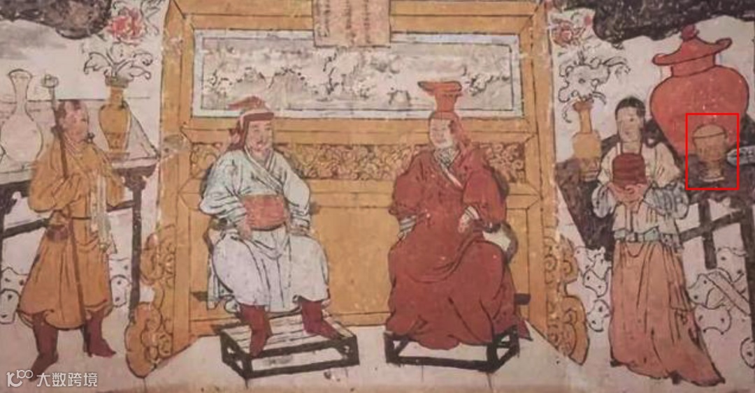 河南登封县登封王墓中的壁画和陕西蒲城洞耳村元代壁画墓中都描绘了用作饮器的高足杯,从壁画上来看,元代的高足杯在庆典及日常生活中,人们也会使用高足杯。