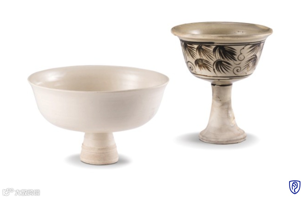 宋 磁州窑白地黑花苍松图高足杯及白釉高足杯 | 2018年香港苏富比拍品