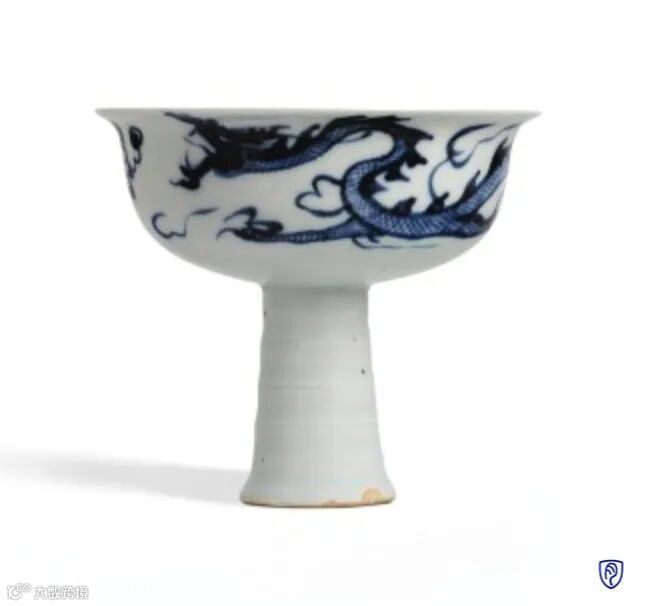 元 青花模印游龙争珠高足杯 | 2012年香港苏富比1242万港币