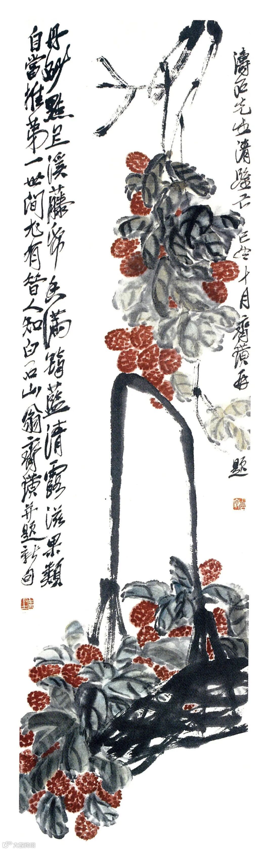 可见,此时齐白石已经找到了自家画荔枝的技法。