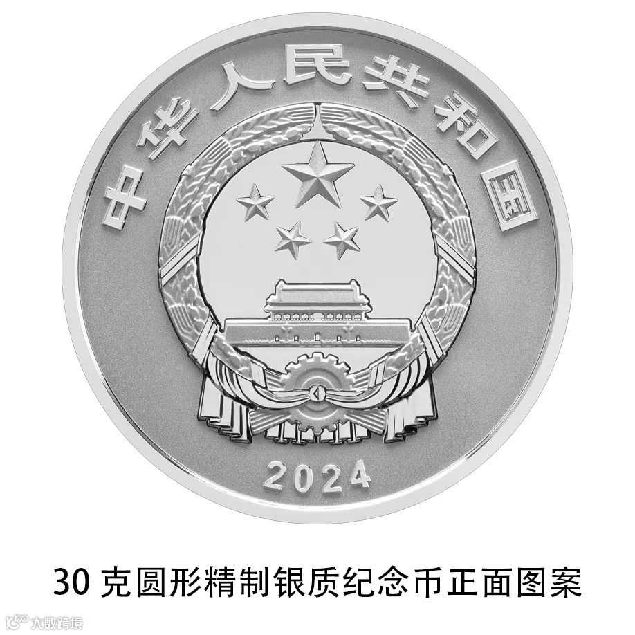 30克圆形银质纪念币为精制币,含纯银30克,直径40毫米,面额10元,成色99.9%,最大发行量60000枚。
