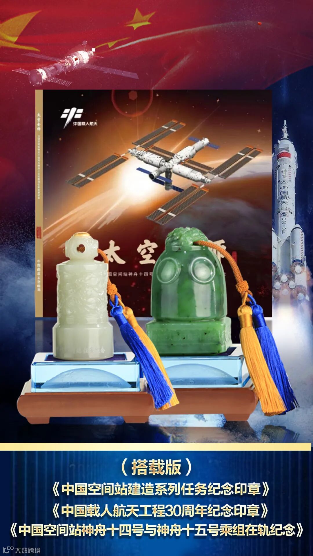 为铭记中国载人航天30年取得的辉煌成就,并献礼中国空间站建成,特邀请中国航天玉雕第一人、中国玉石雕刻大师孟庆东大师,以神舟号返回舱与天和号核心舱为原型,全新创作《天之印》,弘扬航天精神。
