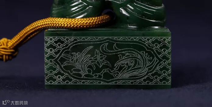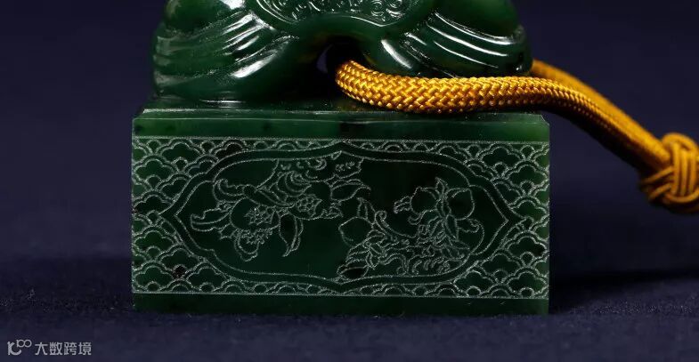 玺基背面雕刻代表花开富贵的牡丹花