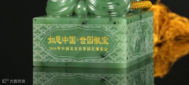 由2019年中国北京世界园艺博览会世园局授权发行,以国玉和田玉为主要载体,由中国工艺美术大师袁广如、中国玉石雕刻大师孟庆东与中国玉石雕艺术大师袁霖三位国家玉雕大师匠心打造的和田白玉版、和田青白玉版、和田碧玉版、和田青玉版《如意中国·世园徽宝》,以工匠之心雕琢世园之灵,以大师之艺展现中华之美。