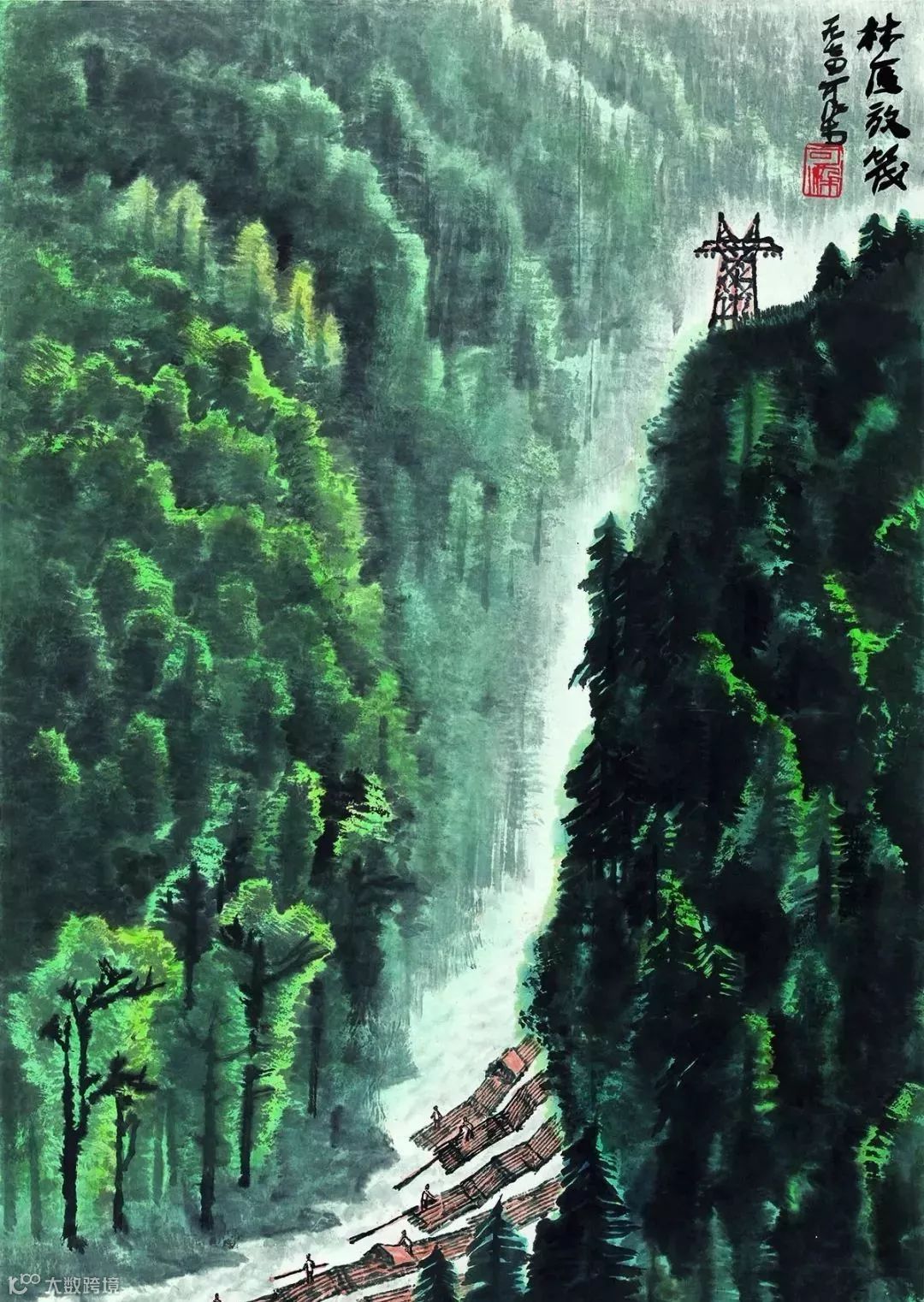 张大千以“泼墨泼彩”绘清烟