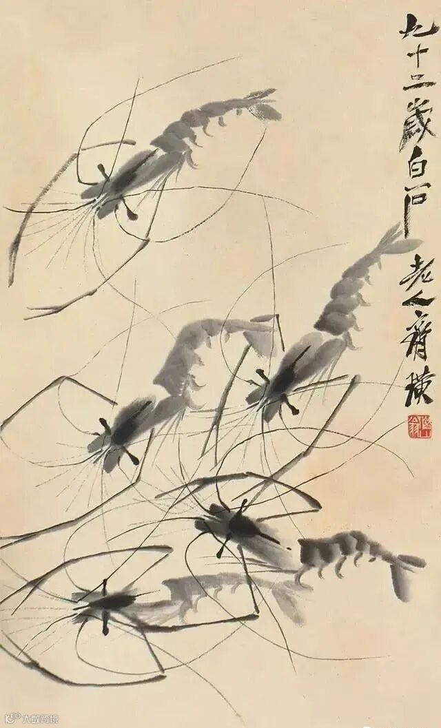 齐白石(1864年1月1日-1957年9月16日)画虾八十六年, 千锤百炼“白石虾 ”。