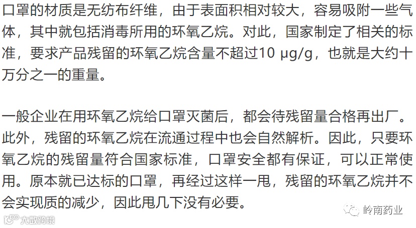 如果口罩合格,环氧乙烷的含量符合国家标准,戴之前没必要不停地甩。