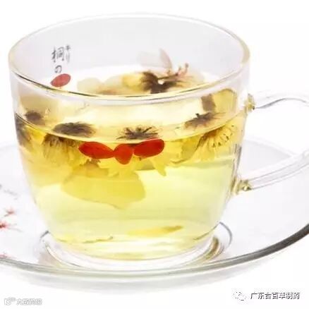 菊花枸杞茶,是用菊花和枸杞同泡而成。每次用杭白菊、枸杞各10克,加入大茶壶内,加入热开水,10分钟后便可饮用。