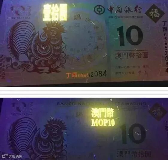 澳门生肖钞采用了新型开窗安全线。在票面背面,开窗出可见数字“10”,随着观察角度的变化,安全线亮光带颜色交替、滚动变化。同时转变不同角度,开窗部分的安全线颜色也非常艳丽