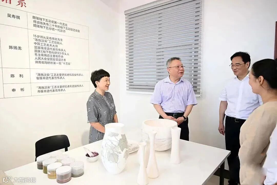 醴陵市享有“中国陶瓷之都”的美誉,釉下五彩瓷被誉为“东方陶瓷艺术高峰”。在省陶瓷研究所、湖南华联瓷业股份有限公司,沈晓明认真观摩手工制瓷和陶瓷展品,了解陶瓷产业发展、生产工艺、人才培养等情况,强调要处理好传承和发展的关系,推进传统技艺和现代技术相融合,让釉下彩焕发新活力;聚焦市场需求,加强器形、色彩等共性技术研发,创新商业模式,注重品牌建设和市场拓展,提高市场占有率和持续竞争力。