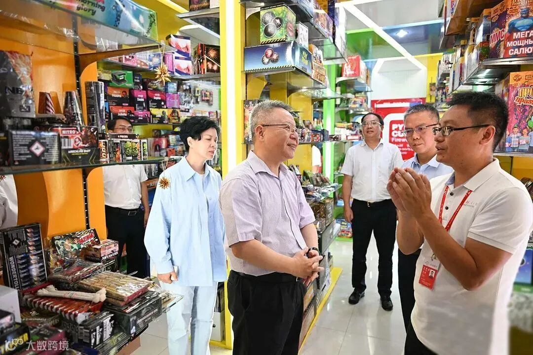 (8月7日,沈晓明来到吉利鞭炮烟花有限公司,仔细询问烟花爆竹生产、物流运输、外贸出口等情况。)
