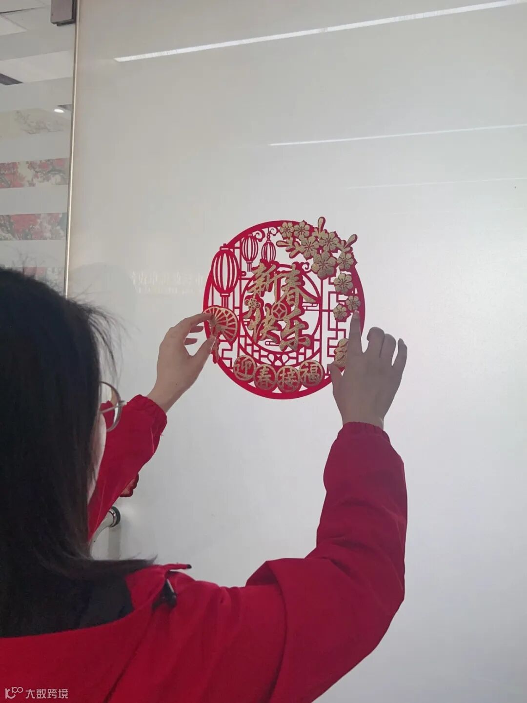 将红色的窗花贴在打扫一新的屋子里,更添喜气。