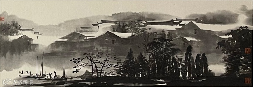 ·中国画独有的黑白色彩与水墨韵味描绘,笔墨浓淡变化巧妙结合了光影元素。