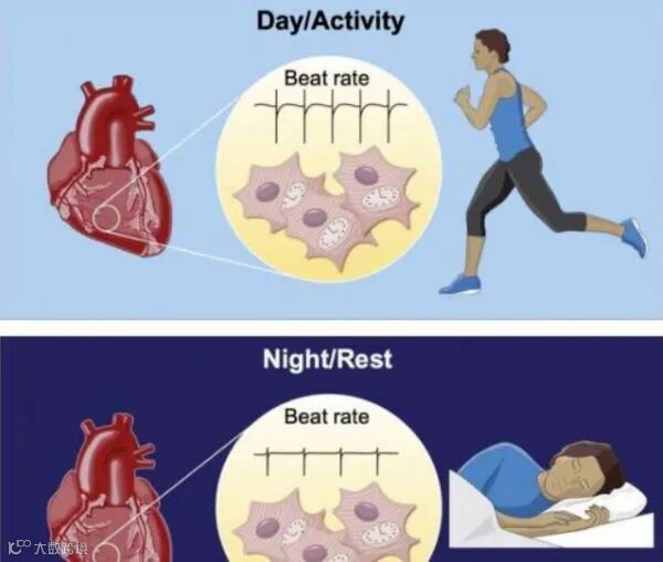 心脏生物钟调节心率的日常变化。