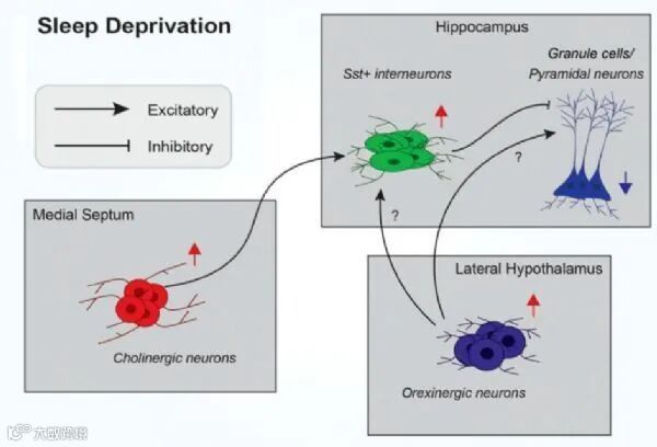 2021年8月,PNAS杂志上[4]发表了美国密歇根大学科学家们的一篇最新研究,他们发现,熬夜晚睡会增加机体抑制性神经元活动,从而破坏机体的记忆力。研究者指出,当熬夜导致睡眠不足时,大脑中导航和处理及存储新记忆的海马体中的抑制神经元活动会增加;这些抑制性神经元会限制其周围神经元的活动,从而使得海马体中的正常神经元活动无法聚集,进而就会破坏记忆的巩固。