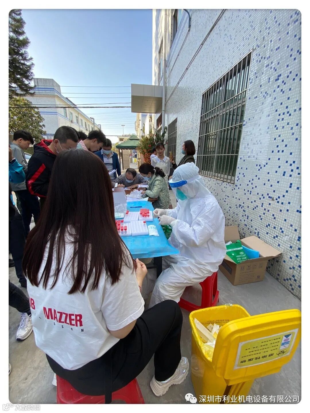 根据国家卫健委《冬春季农村地区新冠肺炎疫情防控工作方案》对农村地区及返乡人员相关防疫工作的部署,1月28日后,跨省份返乡人员,须持7日内核酸检测阴性证明的要求,为方便返乡员工顺利出行,减少员工个人自行前往医疗机构检测造成人群聚集,本着对员工负责、对社会负责的态度,深圳市利业机电设备有限公司于2021年1月31日特意组织返乡员工统一进行新型冠状病毒核酸检测,安排专业检测医护工作人员上门进行核酸采样。