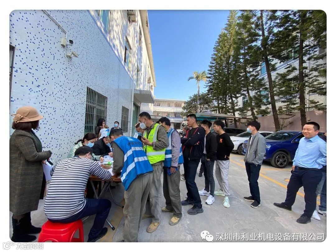 春节假期即将开始,深圳市利业机电设备有限公司积极响应国家号召,大力倡导企业员工留深过年,对于部分回家过年的员工,公司也贴心的送上了一份关怀,组织返乡员工统一进行核酸检测,让他们安全、安心、顺利返乡。