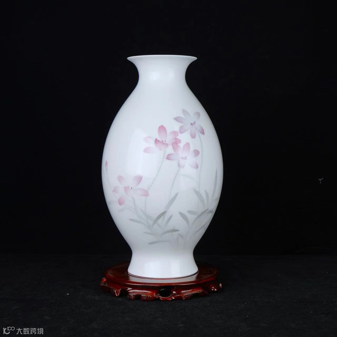 格桑花有着幸福、美好和顽强的寓意,瓶面画面简洁,淡墨相怡,花姿摇曳,更显瓷和釉色的特点。