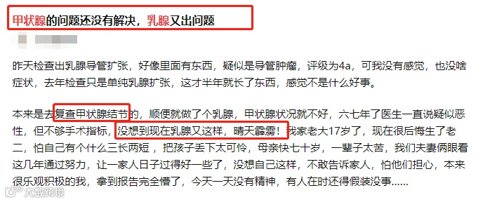 也就是说,甲状腺出了问题,乳腺也很有可能出问题。