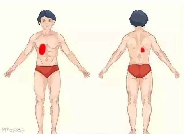 胃出现问题,中腹部会疼痛,背部同一位置也会疼痛。胃、食道引发的疼痛经常与心脏引发的疼痛混淆,最好去看医生。