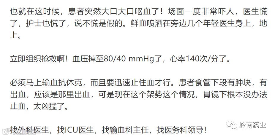 发展太快了,连转去ICU抢救的机会都没有。话又说回来了,患者出血止不住,转去哪都是徒劳的。