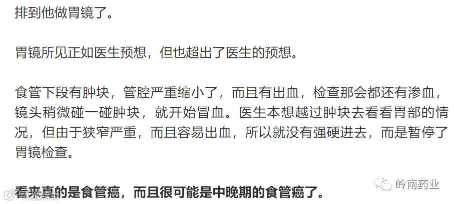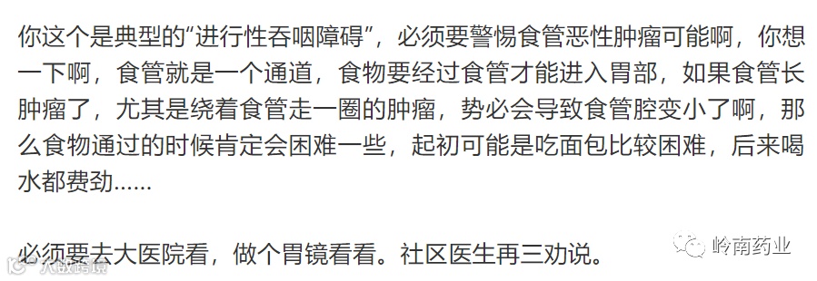 最后,如果患者最近几个月真的有吞咽困难,一定要警惕食管癌。