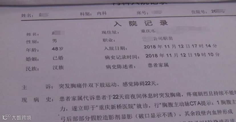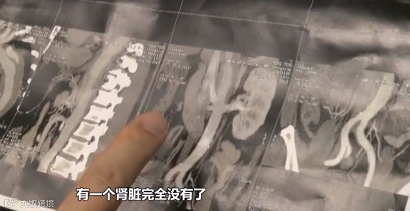 医生:“他是一个主动脉的夹层动脉瘤,血供障碍之后,对动脉有些压迫,就有一个挤压,挤压导致骨骼椎体也有改变,同时对其他脏器也有挤压,整个肾脏,有一个肾脏完全没有了。”