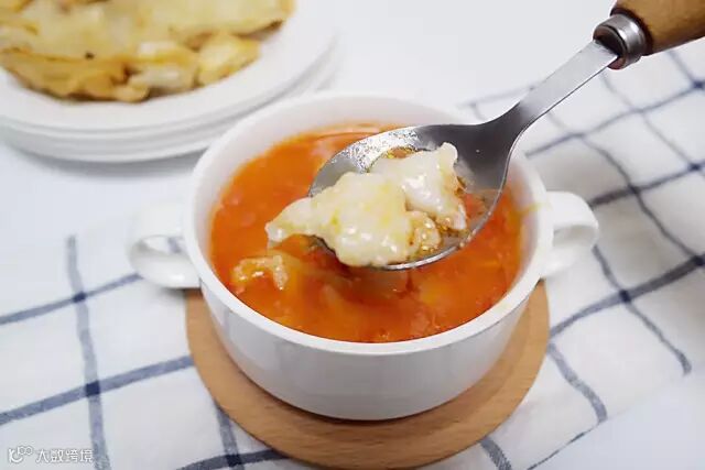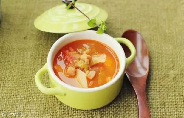 2.最后一个步骤,将少许的番茄酱翻炒一下加入到汤中,是这道汤的精华所在,炒过的番茄酱加入到汤中,汤汁立马红润起来,而且迎合了番茄在汤里的作用,更浓香爽口
