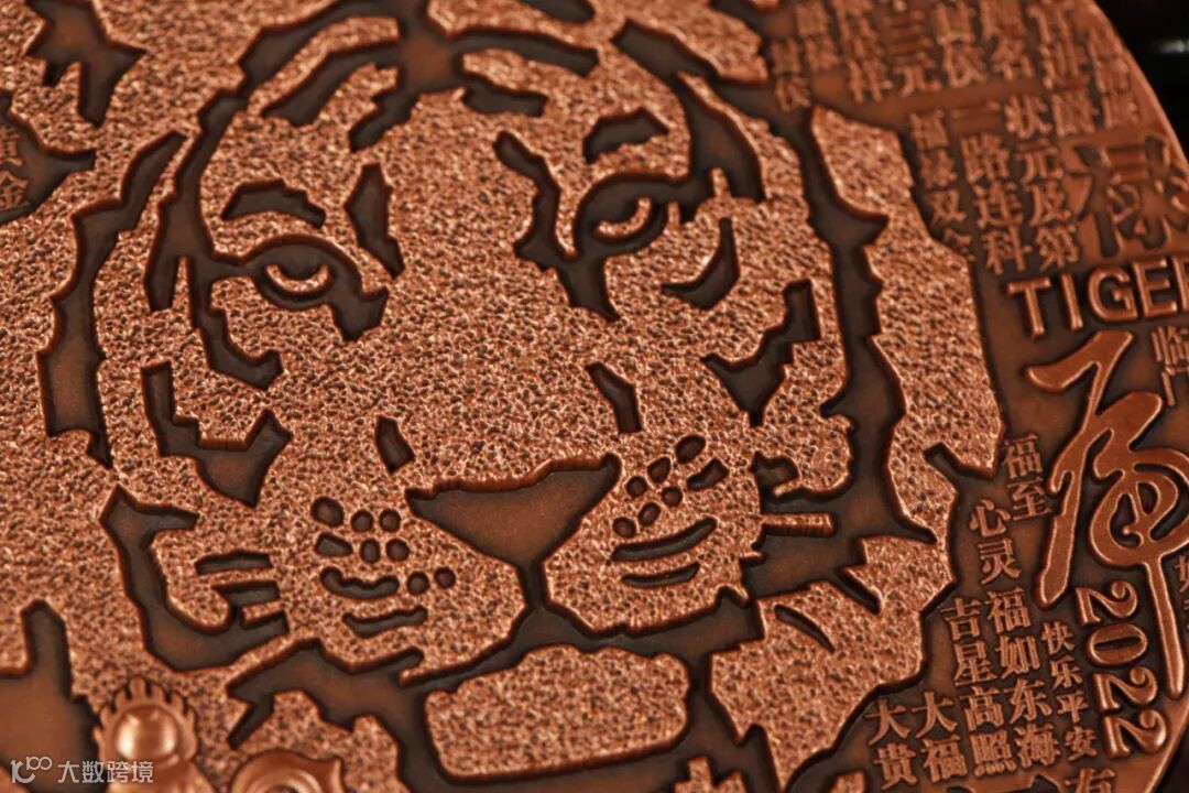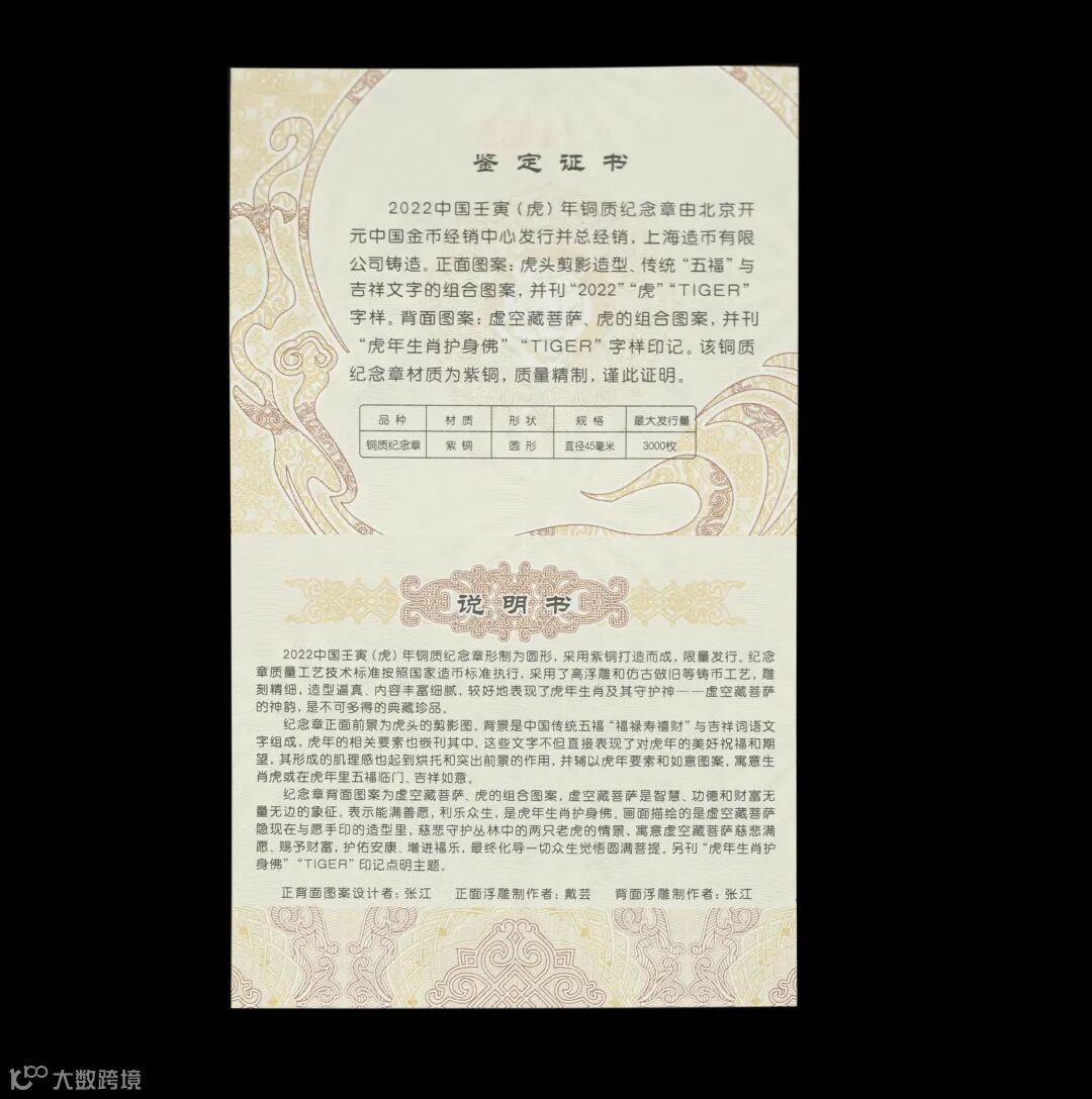 背面图案以虚空藏菩萨、虎的组合图案为主。
