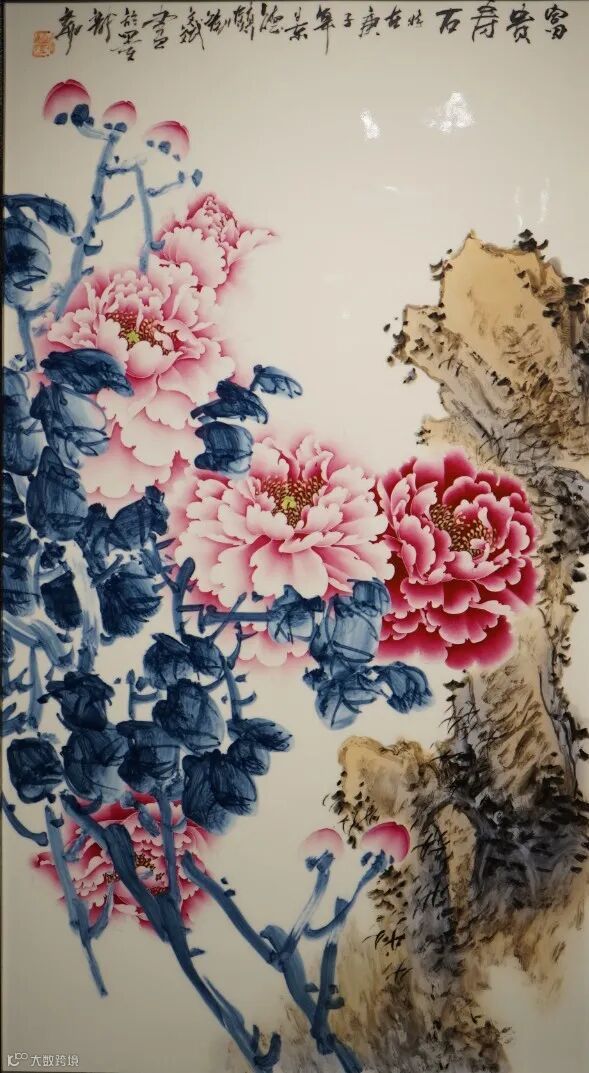▲刘文斌大师 富贵寿石 瓷画