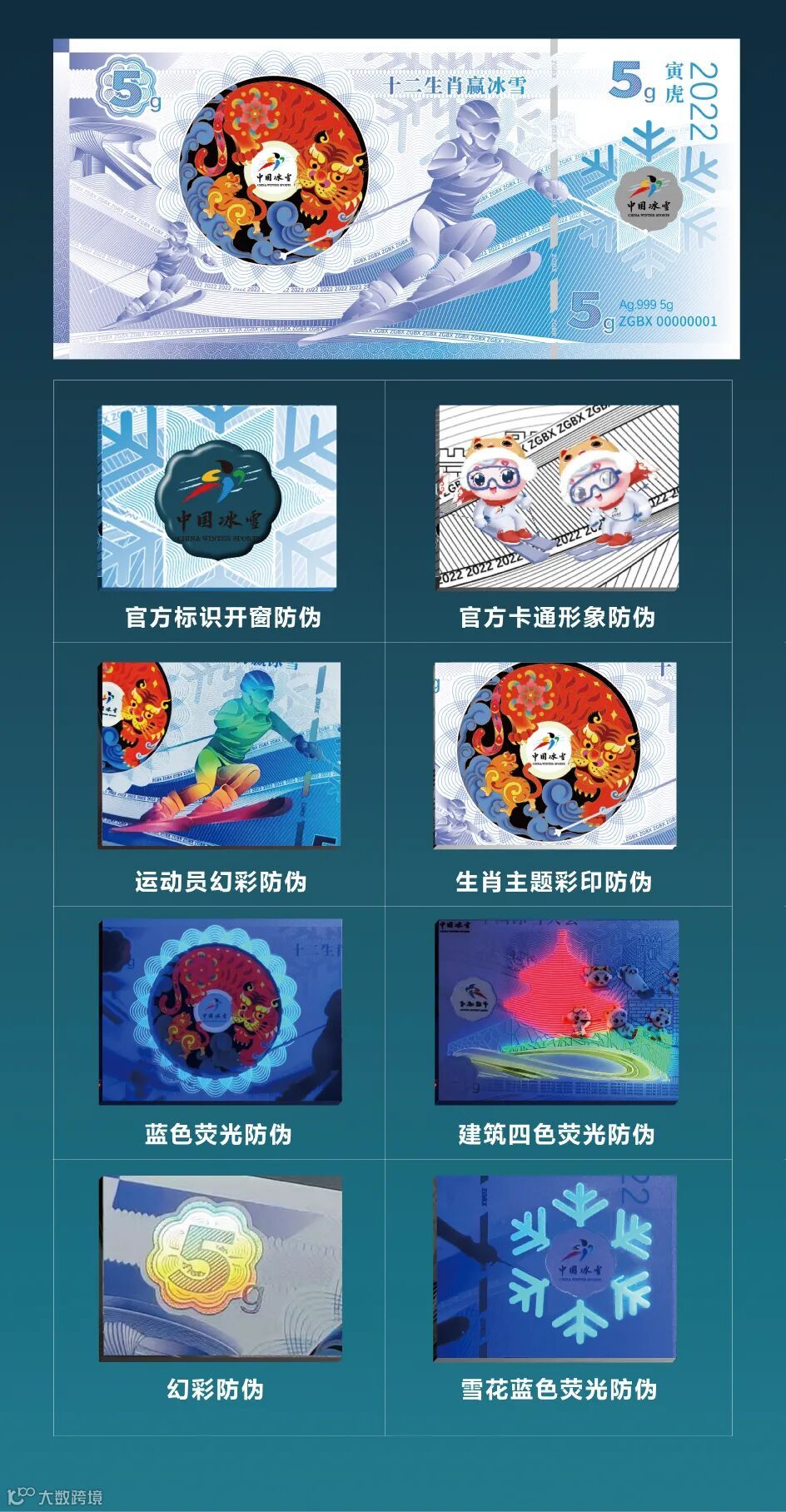 中国冰雪金银券融印钞文化、奥运文化、生肖文化于一体,彰显大国底蕴。