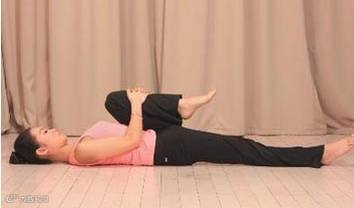 想要排除浊气,我们首先要仰卧,呼气再吸气,将右腿弯曲双臂保住,再将腿拉到胸前。
