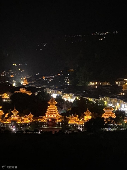 独特的侗寨夜色美如画, 璀璨灯火映照着整个村寨。