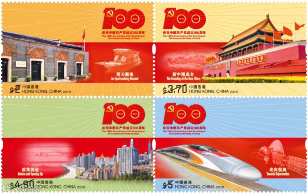 中国香港邮政将于2021年7月1日发行《中国共产党成立一百周年》纪念邮票,一套4枚,同时发行小型张1枚。