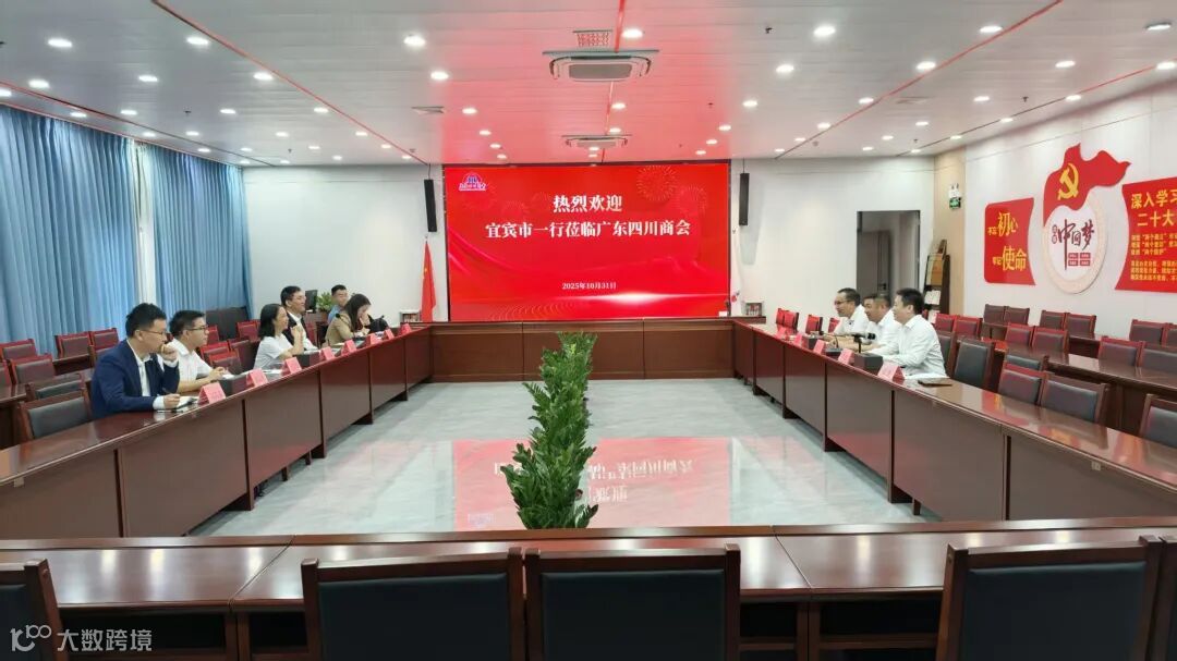 2025年10月31日,宜宾市商务局局长朱晓莉率队莅临广东四川商会,会长熊宗友、执行会长黄勇、执行会长唐刚共同热情接待了家乡来宾,双方围绕宜宾现代产业发展与粤港澳大湾区资源对接进行了深入且富有成效的座谈交流。