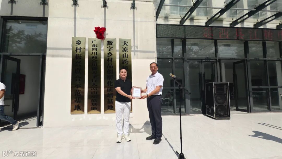 2024年9月6日,广东四川商会川货天下行大凉山示范基地、乡村振兴联合示范基地、数字乡村品创孵化研培基地、大凉山跨境电商孵化平台揭牌仪式在凉山州越西县隆重举行。四川省人民政府驻广州办事处主任王德胜,越西县委副书记沙马木机,县委常委、县政府副县长王风未,凉山州经合局驻广州办局长杨华平,广东四川商会会长熊宗友、执行会长黄勇等参加揭牌仪式。