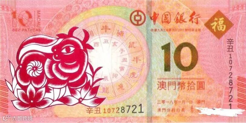 澳门生肖钞作为我国第一款以生肖系列作为题材的纸币,图案充满喜庆,寓意吉祥。