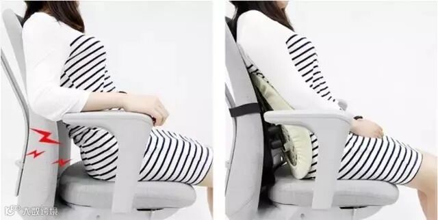 所以,保持端正坐姿是基础。不管是办公,还是开车,在后背放一个支撑物,腰部不悬空,腰椎的压力就能最大限度的减少。