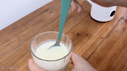 打出来的豆浆非常细腻,不管怎么搅拌都看不到渣渣,不用过滤就能直接喝,如图: