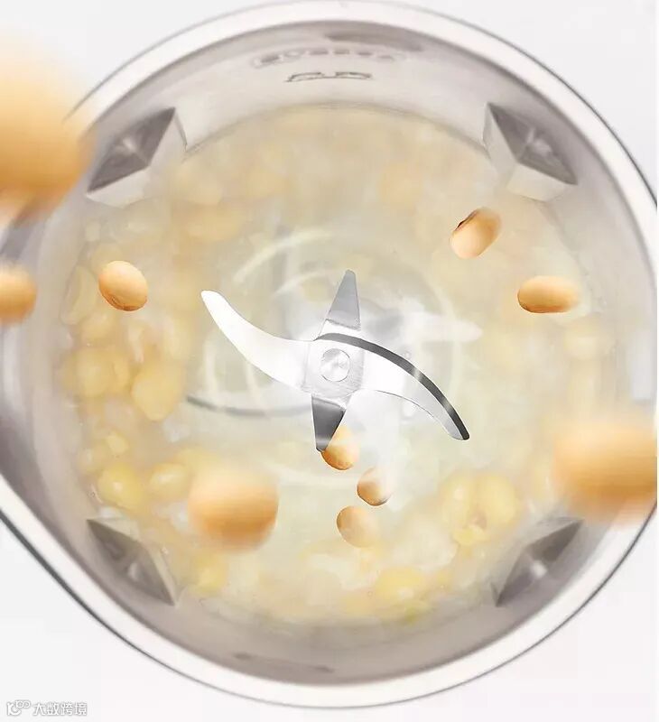 为了让研磨更加均匀,它还做了4条立体扰流筋,能够破坏豆浆在料理机内旋转的惯性,让每一颗豆子都有与刀片充分接触的机会。