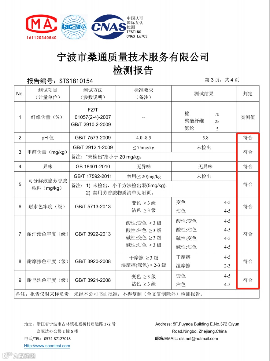 10%的氨纶和聚酯纤维