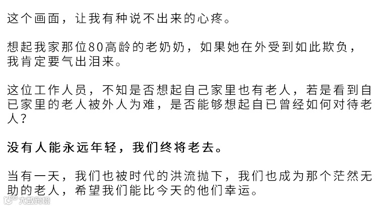 “我们如何对待长辈,既决定了老年人的现在,也决定了未老先衰者的未来。”