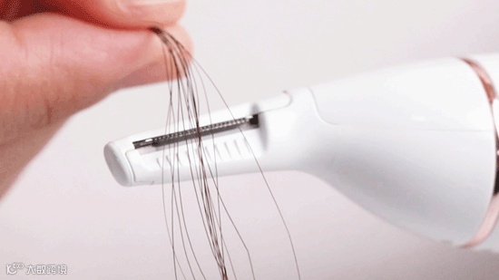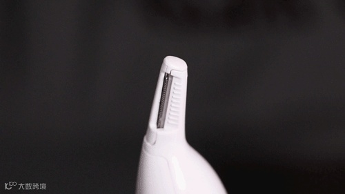 它有两个刀片,在修剪时固定其中一片,通过另外一片高速移动达到修剪的目的,所以它不是靠锋利的刀片切断鼻毛,而是像剪子一样把鼻毛剪断的。