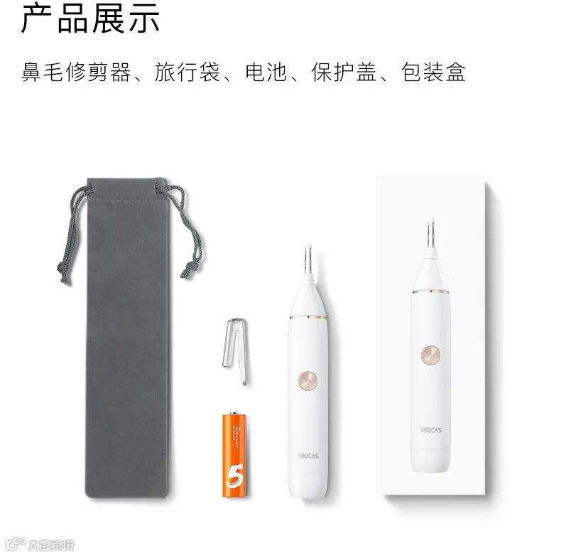 还有,素士鼻毛修剪器采用的电池供电,不需要接长长的充电器,