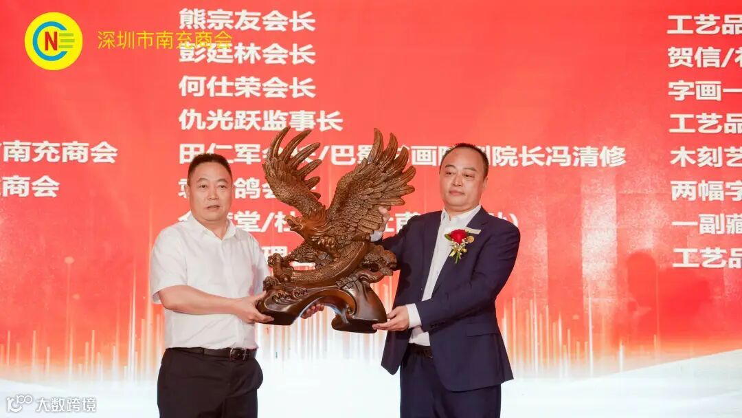 我会执行会长杨永国代表熊宗友会长和广东四川商会,向深圳市南充商会赠礼。南商砥砺二十载,团结奋进新征程。藉此,广东四川商会衷心祝愿团体会员单位深圳市南充商会在第三届理(监)事会的带领下扬帆起航,再创辉煌!