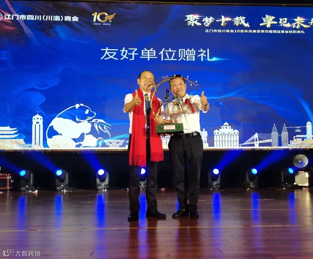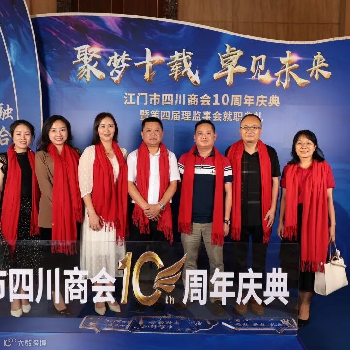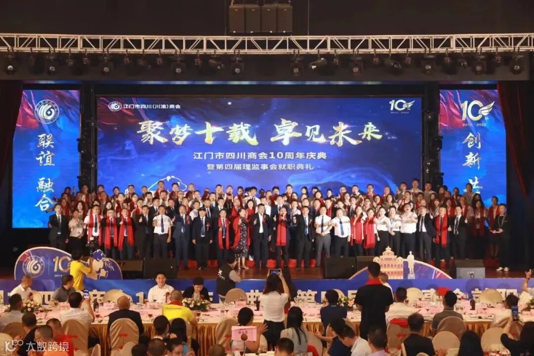 2022年8月27日,江门市四川商会十周年庆典暨第四届理(监) 事会就职典礼隆重举行,商会常务副理事长广州分会会长黄勇,常务副理事长照明电器分会会长廖奎,副会长李莉、张锋和照明电器分会执行会长鲁超,党支部书记周智军,副会长兼副秘书长张玲及广州分会执行会长杨超等参加庆典活动。