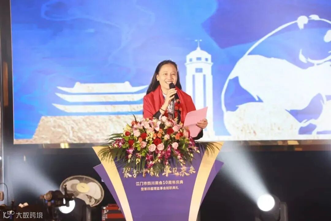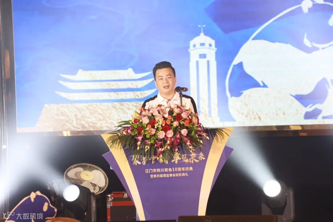 在就职典礼上,江门市四川商会新任会长谢光怀代表新班子成员进行发言。