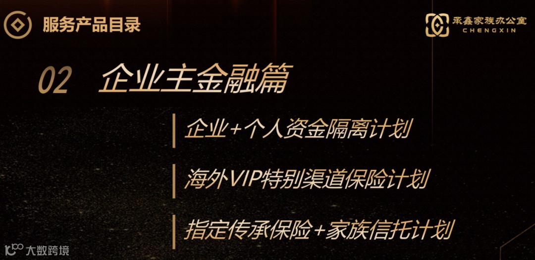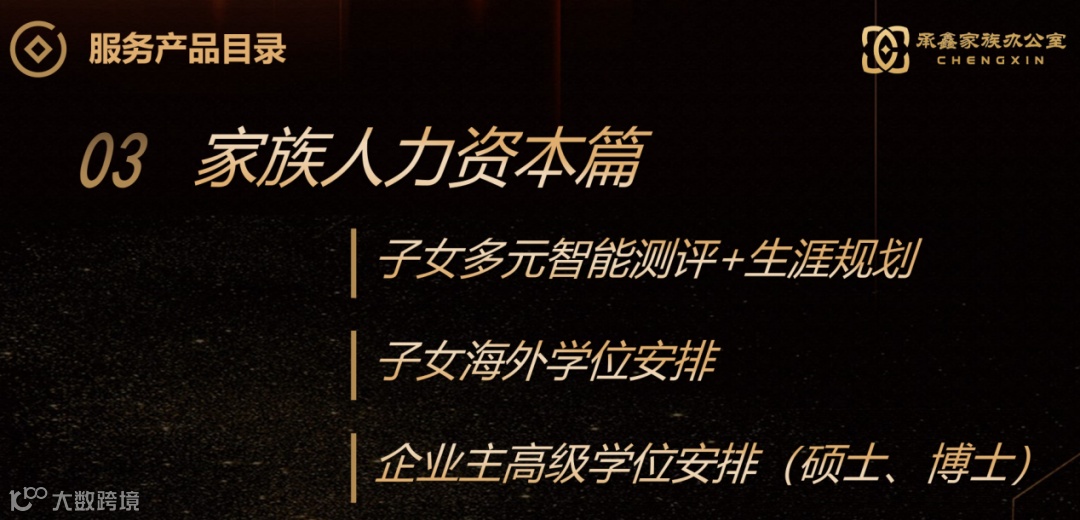 、股权管理)、子女生涯规划和海外学位安排等家族资产和人力资本管理的财富长青藤项目。