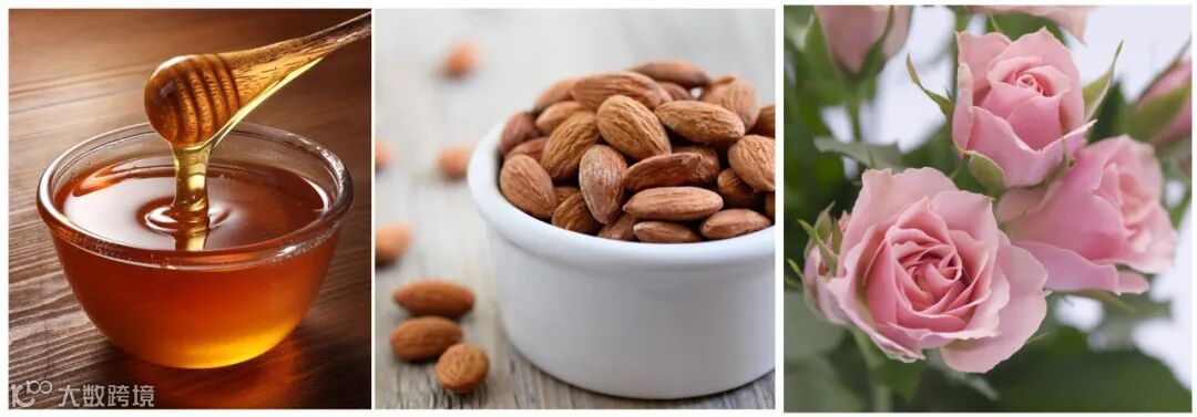 蜂蜜、杏仁、玫瑰,让皮肤又嫩又润,还能白净透亮。